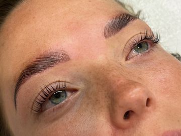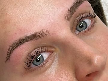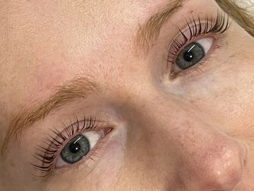 Brow lamination is a professional treatment that smooths and sets the brow hairs into a fuller, more defined shape, creating a polished, lifted look while enhancing the natural brow structure.